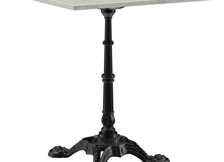 Le modèle Venera sur quatre pieds est disponible comme table à manger ou mange-debout, et s'harmonise parfaitement avec le style bistro français. La structure est en fonte d'acier noir. Le modèle est compatible avec des plateaux ronds de 60 à 80 cm de diamètre et avec des plateaux carrés de 50 x 50 cm à 80 x 80 cm.Numéro d'article