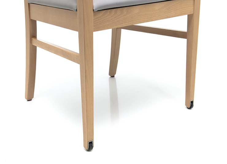 Le modèle Liah, avec ou sans accoudoirs, est intemporel et classique. Le design simple et moderne à la fois, avec une structure en bois de hêtre, teintée dans la couleur chêne ou noyer, crée une atmosphère accueillante. Les différentes hauteurs de dossier de la chaise et de la chaise à accoudoirs permettent de créer des concepts d’espace individuels. Ce modèle est confortable et, avec sa forme fonctionnelle et ergonomique, a de nombreuses utilisations dans le secteur de santé et de soins. Comme option, le modèle peut également être équipé de roulettes sur les pieds avant afin de pouvoir facilement pousser la personne assise à proximité de la table depuis l'arrière. Le revêtement est disponible dans différents matériaux ignifuges et faciles d’entretien, tels que Parotega, Paratexa, Marou, Addison et Sheldon, qui sont particulièrement adaptés au secteur de santé et de soins.Numéro d'article