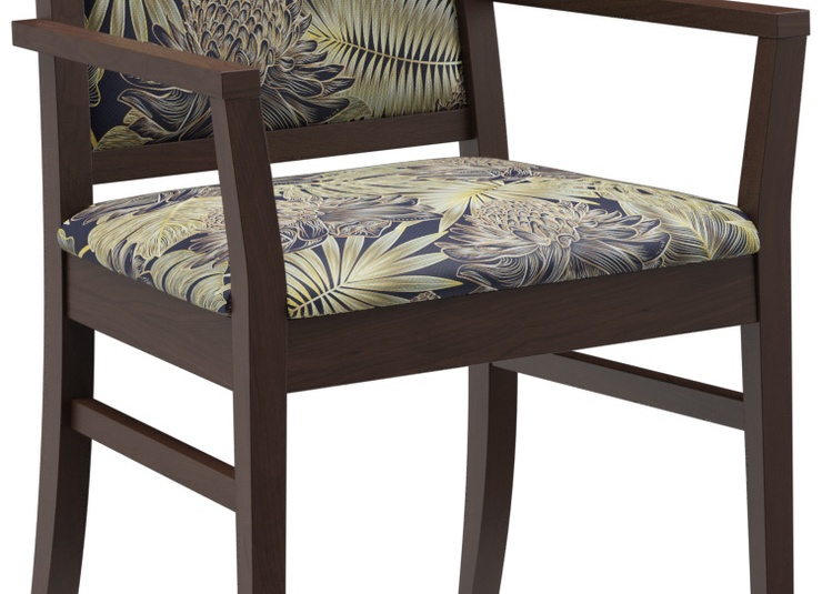 Le modèle Liah, avec ou sans accoudoirs, est intemporel et classique. Le design simple et moderne à la fois, avec une structure en bois de hêtre, teintée dans la couleur chêne ou noyer, crée une atmosphère accueillante. Les différentes hauteurs de dossier de la chaise et de la chaise à accoudoirs permettent de créer des concepts d’espace individuels. Ce modèle est confortable et, avec sa forme fonctionnelle et ergonomique, a de nombreuses utilisations dans le secteur de santé et de soins. Comme option, le modèle peut également être équipé de roulettes sur les pieds avant afin de pouvoir facilement pousser la personne assise à proximité de la table depuis l'arrière. Le revêtement est disponible dans différents matériaux ignifuges et faciles d’entretien, tels que Parotega, Paratexa, Marou, Addison et Sheldon, qui sont particulièrement adaptés au secteur de santé et de soins.Numéro d'article