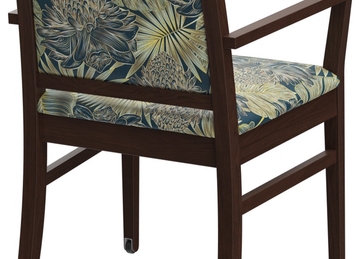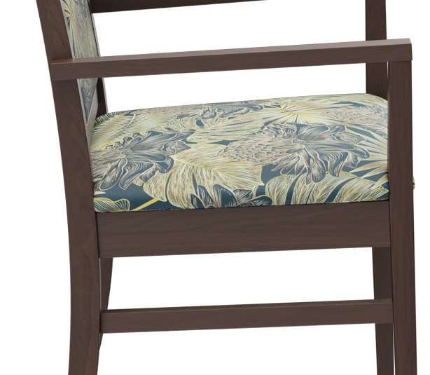 Le modèle Liah, avec ou sans accoudoirs, est intemporel et classique. Le design simple et moderne à la fois, avec une structure en bois de hêtre, teintée dans la couleur chêne ou noyer, crée une atmosphère accueillante. Les différentes hauteurs de dossier de la chaise et de la chaise à accoudoirs permettent de créer des concepts d’espace individuels. Ce modèle est confortable et, avec sa forme fonctionnelle et ergonomique, a de nombreuses utilisations dans le secteur de santé et de soins. Comme option, le modèle peut également être équipé de roulettes sur les pieds avant afin de pouvoir facilement pousser la personne assise à proximité de la table depuis l'arrière. Le revêtement est disponible dans différents matériaux ignifuges et faciles d’entretien, tels que Parotega, Paratexa, Marou, Addison et Sheldon, qui sont particulièrement adaptés au secteur de santé et de soins.Numéro d'article