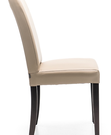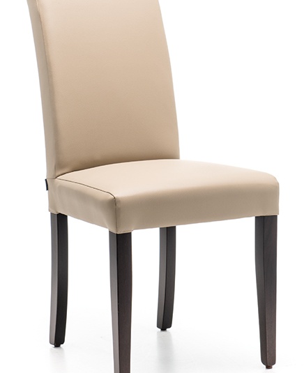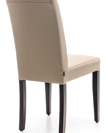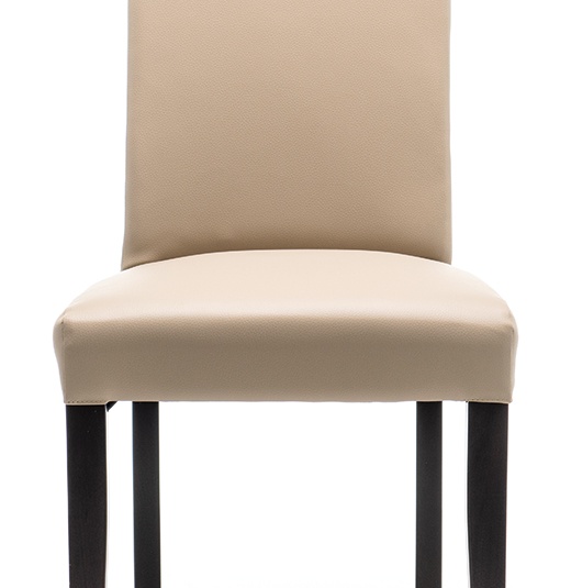 Une chaise de restaurant classique, qui trouve également parfaitement sa place devant un bureau dans une chambre d’hôtel, est le modèle Kuba. La structure est en bois de hêtre teinté couleur noyer ; le revêtement en similicuir est disponible en versions Casual taupe, noir, brun café, ou en microfibre Kolambia, avec un toucher type nubuck, en brun.Numéro d'article