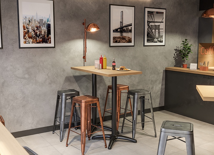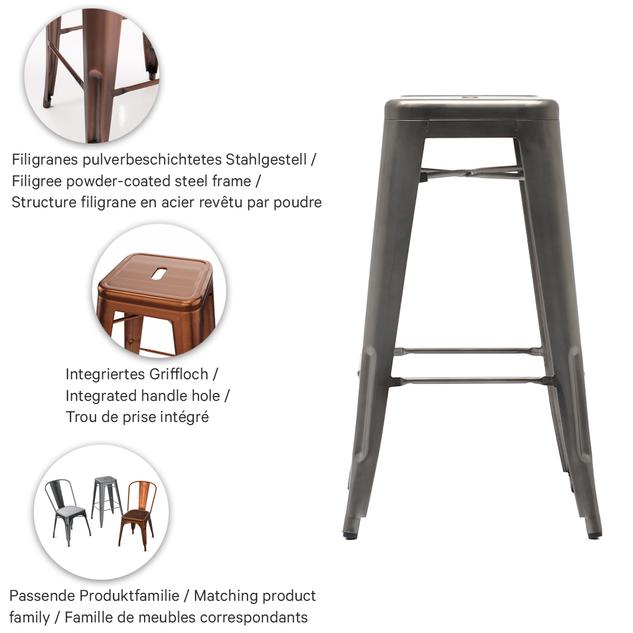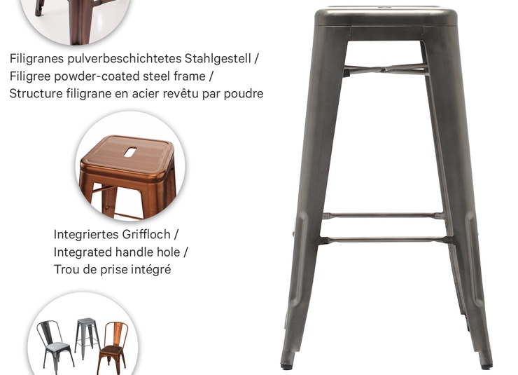 L’acier qui a du caractère : cette chaise et le tabouret de bar assorti sont des classiques du design pour la restauration – un style industriel affirmé, sans compromis au quotidien. La finition thermolaquée est extrêmement facile d’entretien et résistante aux rayures, idéale en cas de forte fréquentation. Fabriqués selon la qualité éprouvée GO IN, tous deux répondent à des standards de production industrielle – la tôle d’acier façonnée avec précision devient un élément de design visible. Il en résulte une silhouette marquante offrant une capacité de charge exceptionnelle. Et lorsque la rapidité est de mise : chaise et tabouret de bar sont empilables, aussi pratiques que déterminants pour le style.- Classique du design au look industriel : design en acier intemporel à l’effet clair et professionnel