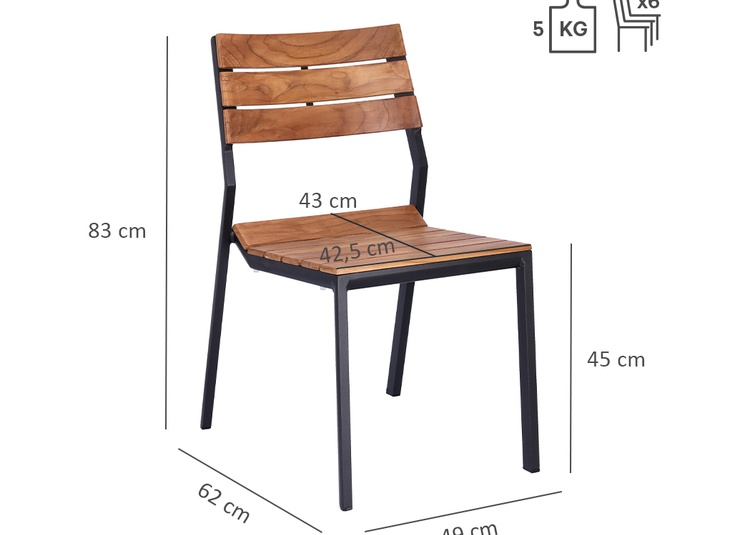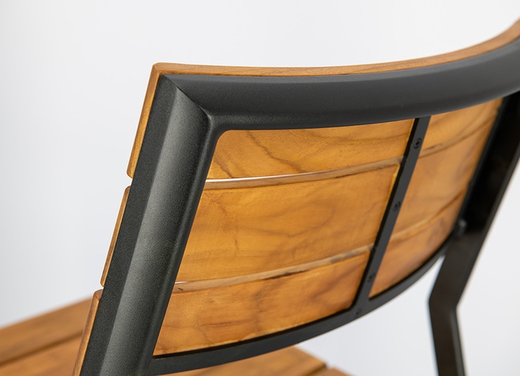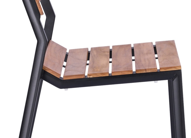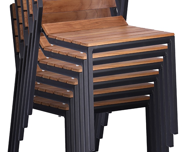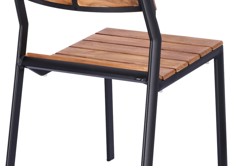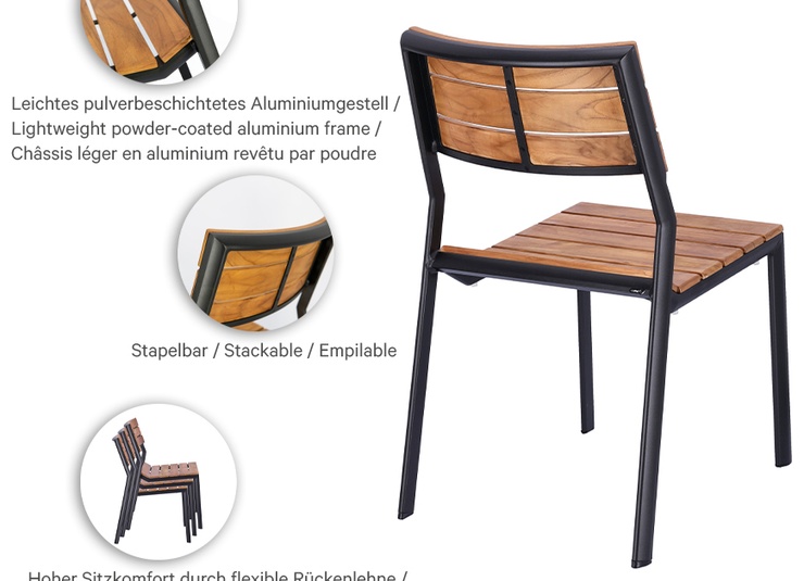 Le modèle empilable Tadeo - disponible en chaise et en chaise avec accoudoirs - attirera tous les regards, tant à l'extérieur qu'à l'intérieur. Grâce à la combinaison d'une structure en aluminium peinte en noir par poudrage et d'une assise et d'un dossier en teck non traité, Tadeo est à la fois élégante et moderne. Le dossier arrondi offre un confort d'assise particulièrement élevé.