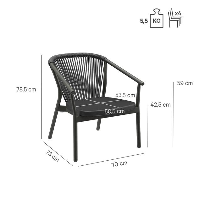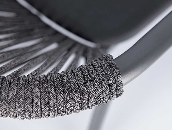 - Assise en Textilène à séchage rapide et dossier en corde tressée n’absorbant pas l’eau.
