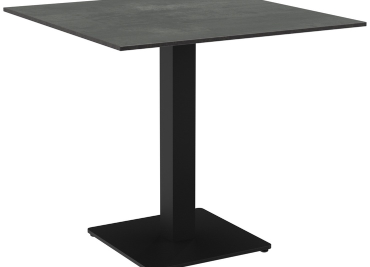 Ronde, rectangulaire - haute, basse -, grande, petite : Kerst est disponible dans de nombreuses variantes, pour l'intérieur et l'extérieur. Le piètement en acier peint par poudrage de couleur noire ou en acier inox peut être combiné avec différents plateaux de table et est équipé de patins réglables manuellement. La combinaison de pieds rectangulaires avec des colonnes rondes permet de créer des contrastes intéressants.Numéro d'article