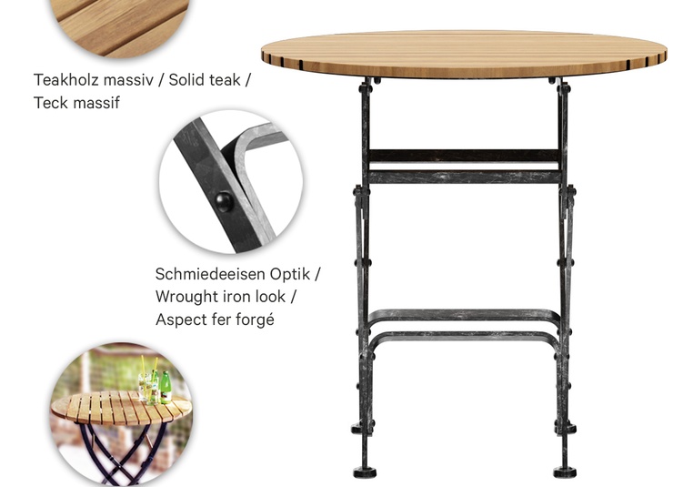 • Bois de teck élégant et structure en acier robuste avec effet fer forgé