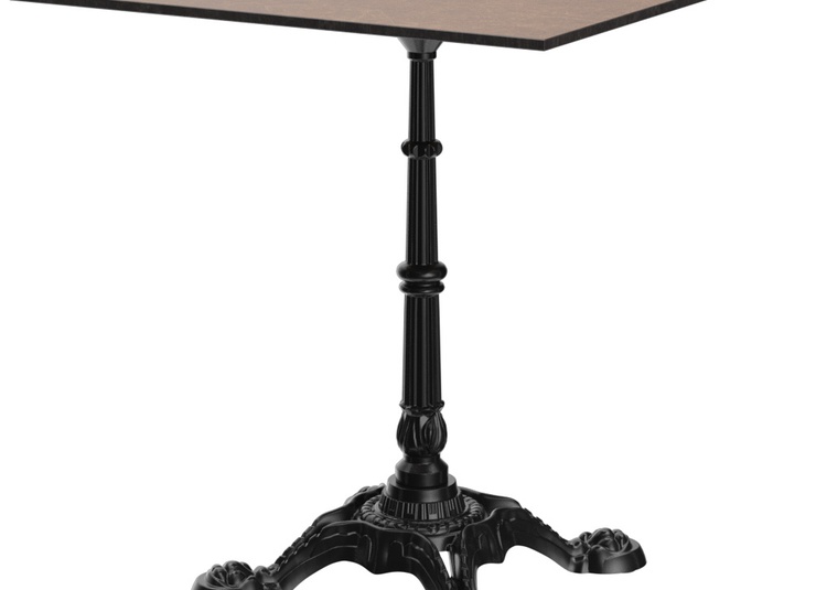 Le modèle Venera sur quatre pieds est disponible comme table à manger ou mange-debout, et s'harmonise parfaitement avec le style bistro français. La structure est en fonte d'acier noir. Le modèle est compatible avec des plateaux ronds de 60 à 80 cm de diamètre et avec des plateaux carrés de 50 x 50 cm à 80 x 80 cm.Numéro d'article