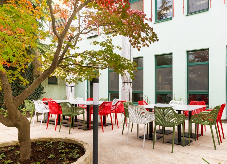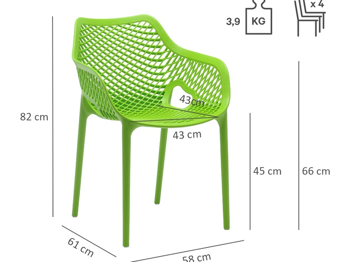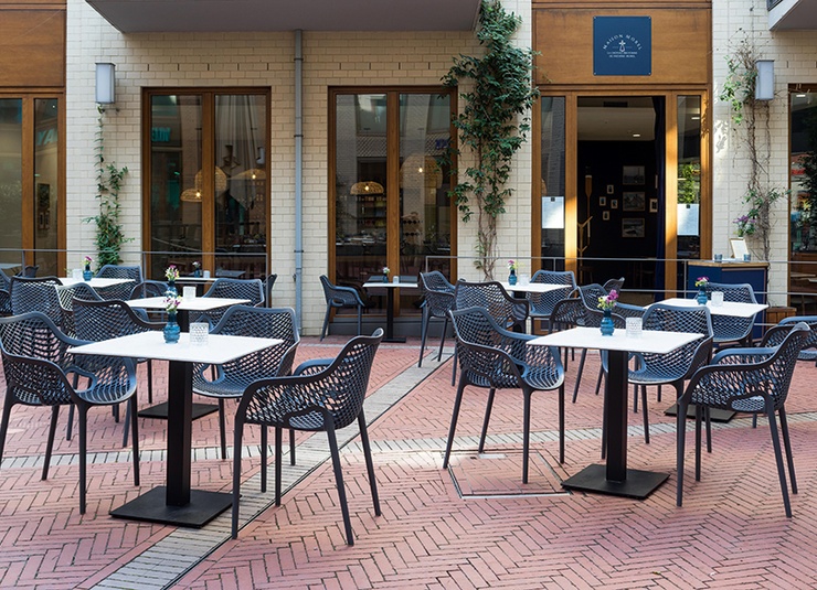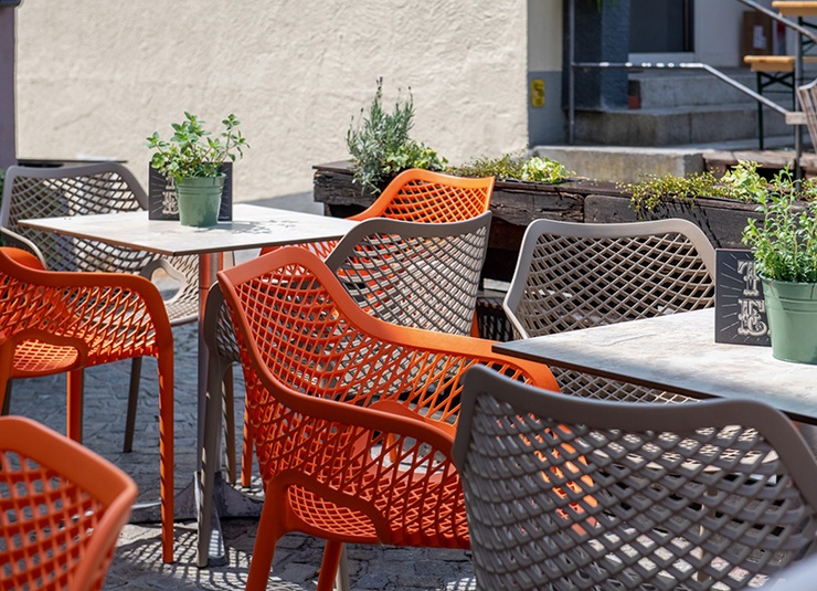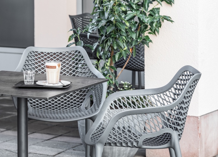 Notre polyvalent d’extérieur Emilia, fabriqué en polypropylène renforcé de fibres de verre, séduit par sa grande stabilité et son faible poids. Sa forme ronde et organique offre un confort d’assise exceptionnel et confère à la chaise un aspect moderne et accueillant. Le matériau est résistant aux UV et aux intempéries, idéal pour une utilisation extérieure durable. La chaise est facile d’entretien, empilable et donc particulièrement pratique pour un usage quotidien dans la restauration. Une chaise avec accoudoirs et un tabouret de bar assortis sont également disponibles – pour un concept d’aménagement harmonieux et bien pensé.Numéro d'article