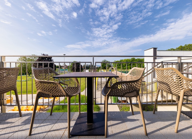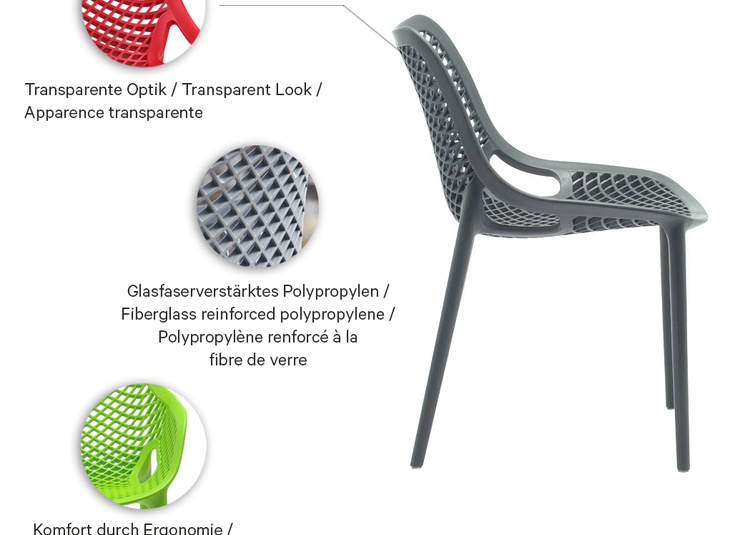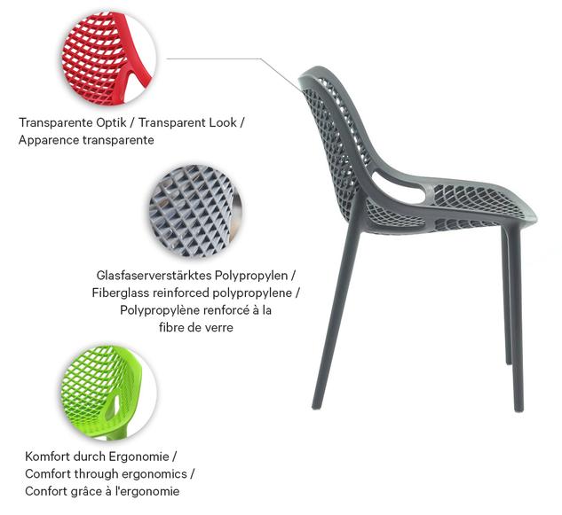 Notre polyvalent d’extérieur Emilia, fabriqué en polypropylène renforcé de fibres de verre, séduit par sa grande stabilité et son faible poids. Sa forme ronde et organique offre un confort d’assise exceptionnel et confère à la chaise un aspect moderne et accueillant. Le matériau est résistant aux UV et aux intempéries, idéal pour une utilisation extérieure durable. La chaise est facile d’entretien, empilable et donc particulièrement pratique pour un usage quotidien dans la restauration. Une chaise avec accoudoirs et un tabouret de bar assortis sont également disponibles – pour un concept d’aménagement harmonieux et bien pensé.Numéro d'article