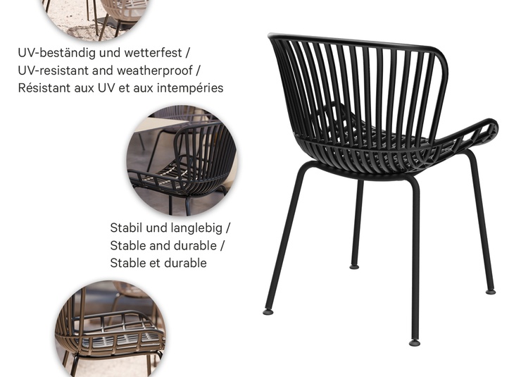 Le cadre pour Eskan est en acier peint en noir par poudrage et est combiné avec une coque en plastique renforcé de fibres de verre. La coque du siège offre une très bonne assise grâce à sa forme ergonomique – même sans coussin supplémentaire. Le pied robuste en acier peint par poudrage assure une grande stabilité et durabilité dans une utilisation intensive dans les lieux publics et la restauration. Avec son design clair et moderne, le tabouret s'intègre parfaitement aux concepts d'aménagement contemporains et convient idéalement aux cafés, restaurants, terrasses extérieures et autres espaces commerciaux. Disponible en tant que chaise et tabouret de bar. La livraison se fait en pièces détachées ; le modèle est résistant aux UV et aux intempéries, ce qui le rend adapté à une utilisation intérieure et extérieure.