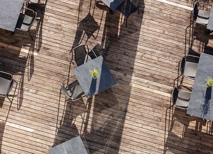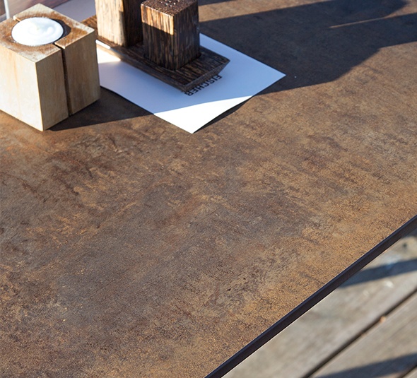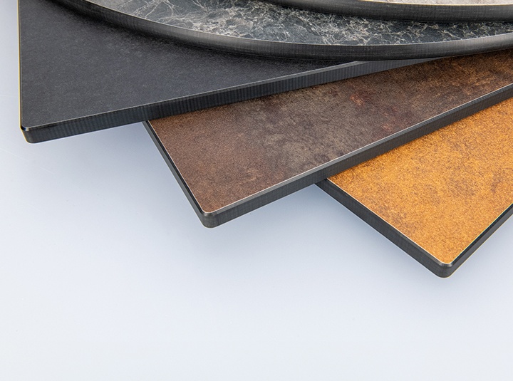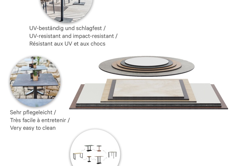 Des décors attrayants caractérisent le panneau mince Compact Slim, qui convient aussi bien à une utilisation à l'intérieur qu'à l'extérieur. La surface facile d'entretien en stratifié haute densité HPL est résistante aux UV et sa résistance correspond au matériau de la norme DIN EN 438 pour les plans de travail de cuisine. Le plan résistant aux chocs est disponible en douze décors de forme carrée, ronde ou rectangulaire ; des formats et des formes spéciales sont également possibles. La couleur des chants est foncée - indépendamment de la forme et du décor. Vers les produits!