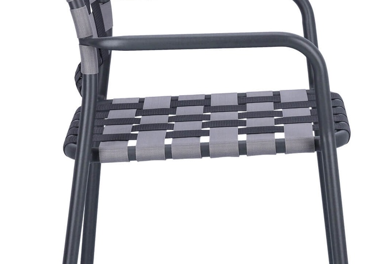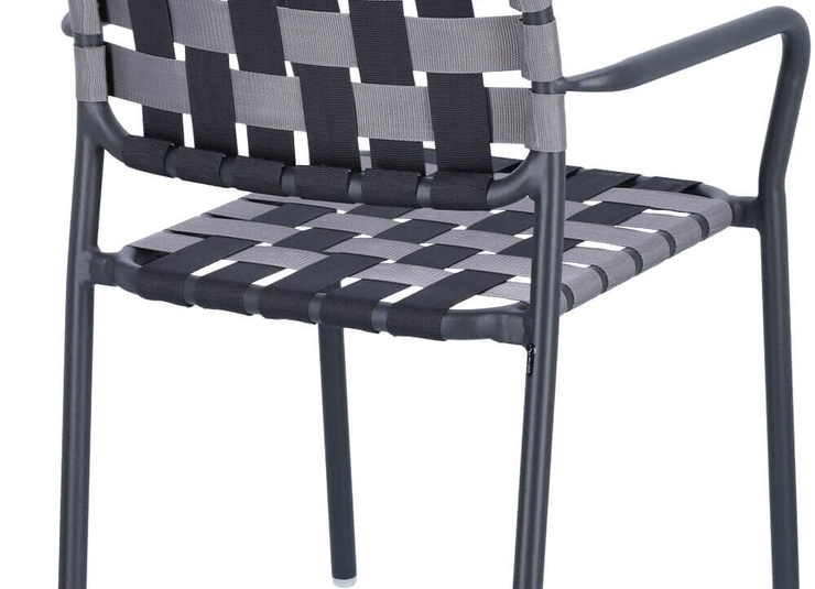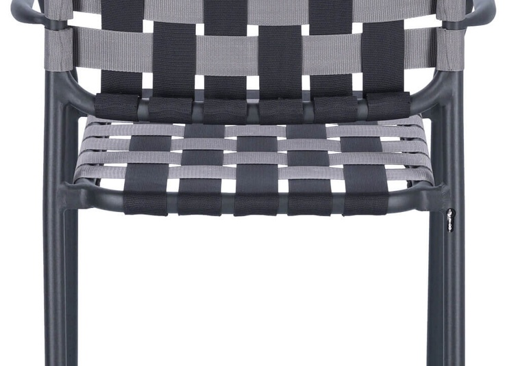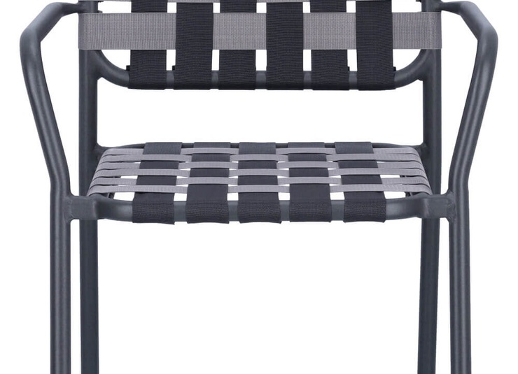 Un véritable chef-d'œuvre du design GO IN ! Le tressage innovant de l'assise et du dossier avec de larges sangles confère à la chaise à accoudoirs empilable Brigo son charme particulier. La structure est en aluminium revêtu par poudre. Les sangles sont en polypropylène. Particulièrement pratique : elle est légère et offre un grand confort d'assise. Empilable jusqu'à quatre chaises, il peut être rangé rapidement et facilement pour gagner de la place. Idéal pour la restauration en extérieur. La chaise tressée est disponible dans un grand choix de couleurs. Un coussin d'assise de 40 x 40 cm peut être ajouté en option.Numéro d'article