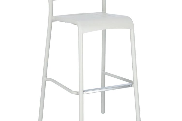 Le modèle Helke, disponible comme chaise, chaise à accoudoirs et tabouret de bar, se distingue par les lamelles et la forme légèrement courbée du dossier. Le siège empilable est en aluminium peint par poudrage et disponible en différentes couleurs.Numéro d'article
